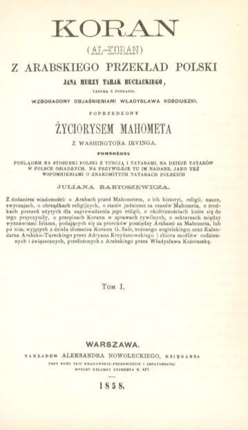 Niedawno ponownie wczytałem się w jedno z pierwszych tłumaczeń "Koranu" na język polski, dokonanego ponoć przez Śp. Jana Murzę Tarak Buczackiego (zm. 1857).