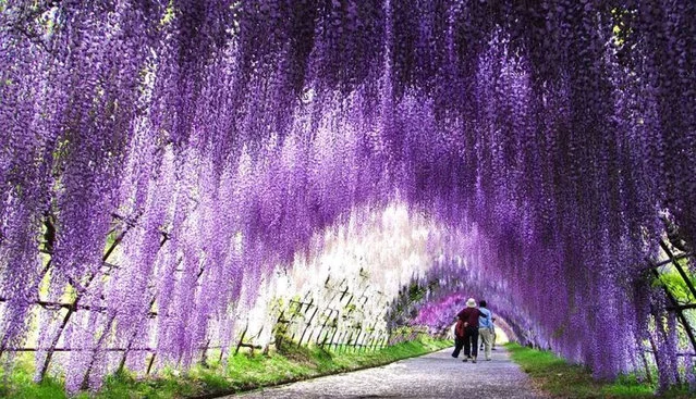 Wszędzie różnobarwne glicynie... Japończycy wiedzą, jak tworzyć magiczne ogrody! Poznajcie Kawachi Fuji Garden - jeden z najpiękniejszych ogrodów na świecie. Te zdjęcia są naprawdę niesamowite!