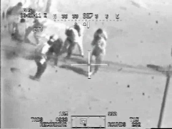 Na filmie widać grupę około ośmiu osób na jednej z bagdadzkich ulic. Piloci śmigłowca identyfikują ich jako uzbrojonych rebeliantów. "On ma RPG (ręczny granatnik przeciwpancerny). Będę strzelał" - słychać, jak mówi głos w przekazie radiowym. Po chwili pada seria z działka śmigłowca i ludzie na ulicy giną.