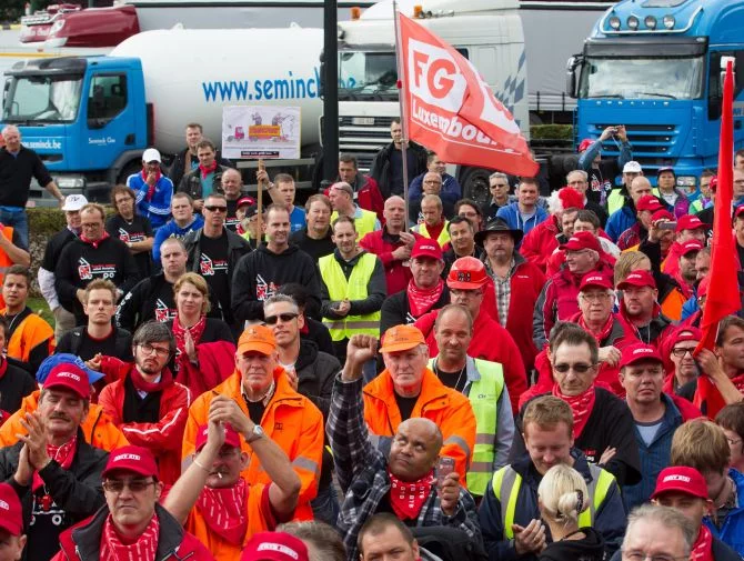 Kierowcy protestowali pod hasłem: "Równe zarobki za taką samą pracę!", wzywając UE do wzmocnienia mechanizmów kontroli zatrudnienia i wynagrodzeń.