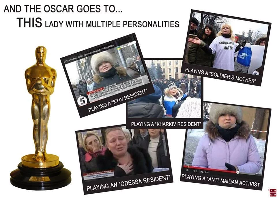 W ostatnim czasie, w zależności od potrzeby, była smutą matką żołnierza, zdecydowaną przeciwniczką Majdanu czy mieszkanką Odessy. Według internautów, którym udało się ją powiązać z prorosyjskimi wiecami i demonstacjami popierającymi Janukowycza, zasługuje na filmowego Oscara, gdyż każdą swoją rolę odgrywa bardzo "przekonująco".