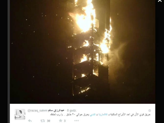 Marina Torch, czyli "Pochodnia Przystani", to znajdujący się w Dubaju jeden z najwyższych budynków mieszkalnych świata. 348-metrowa wieża zapłonęła w nocy z piątku na sobotę. Nikomu nic się nie stało - podaje Russia Today.