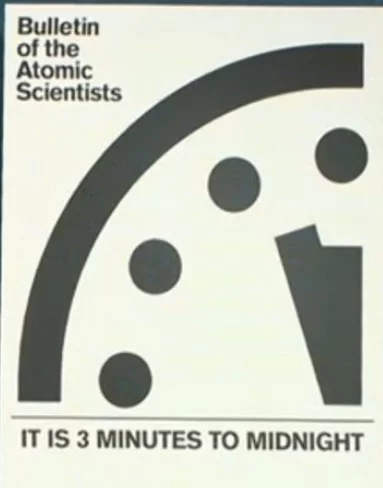 Biorąc pod uwagę wskazania "zegara zagłady" najbliżej zagłady ludzkość była w 1953 roku, gdy Stany Zjednoczone testowały bombę wodorową, natomiast najmniejsze zagrożenie było w roku 1991m gdy upadł Związek Radziecki.
